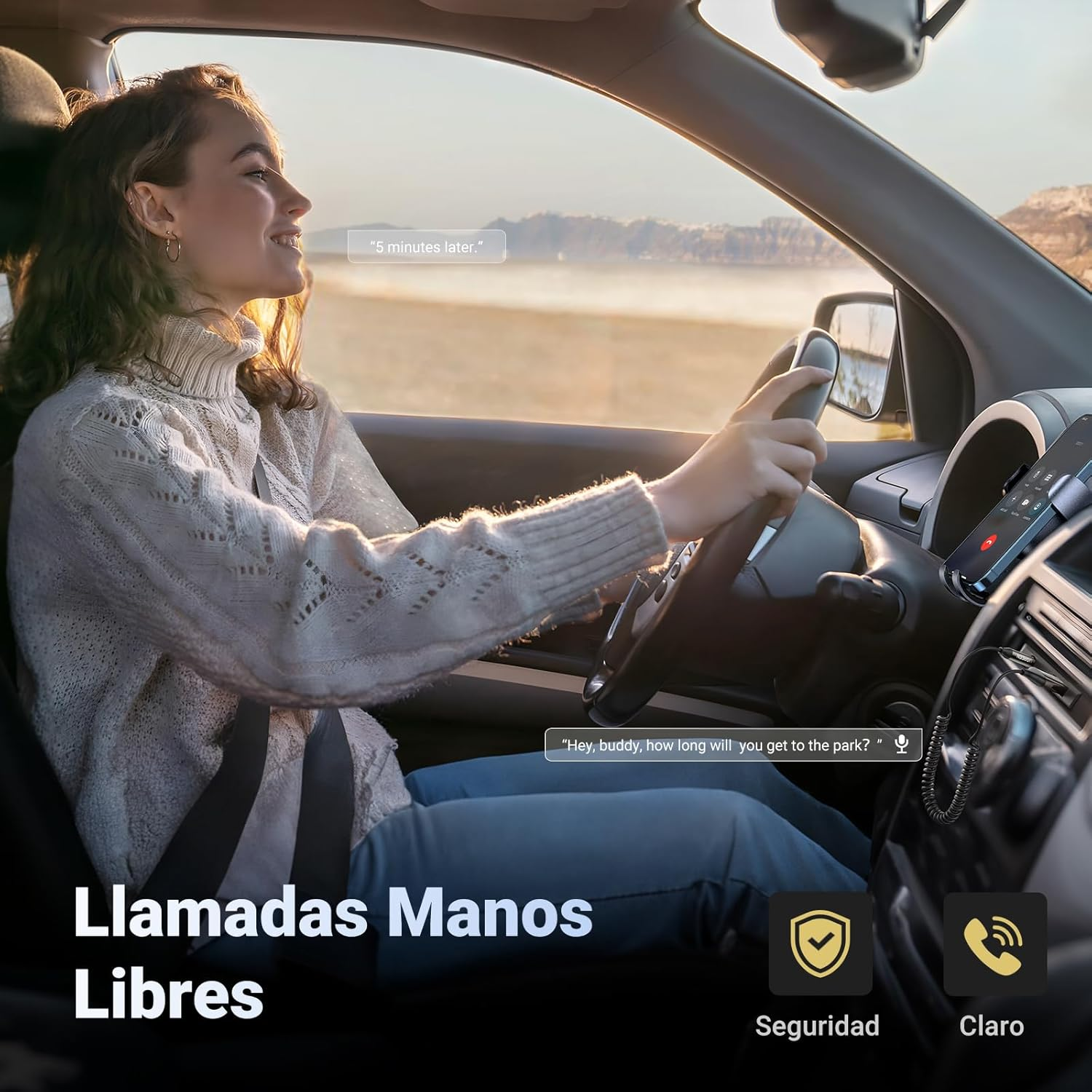 • [ Excelente Calidad de Sonido ] Este Bluetooth Coche Aux utiliza el protocolo A2DP para proporcionar una mejor calidad de sonido. Puede escuchar listas de reproducción de teléfonos móviles, Spotify, Deezer y otros medios de transmisión en el automóvil y disfrutar de una calidad de sonido clara.